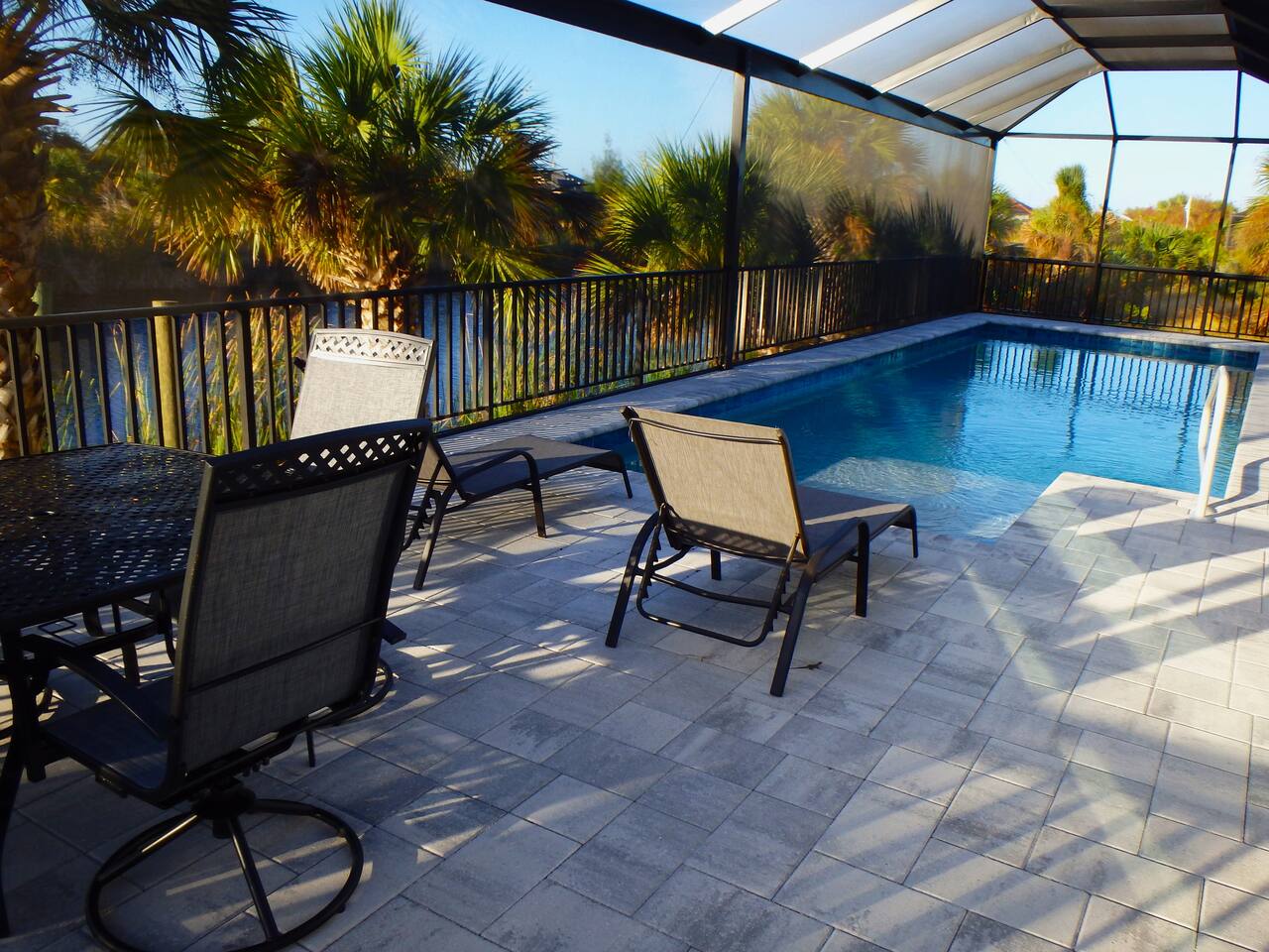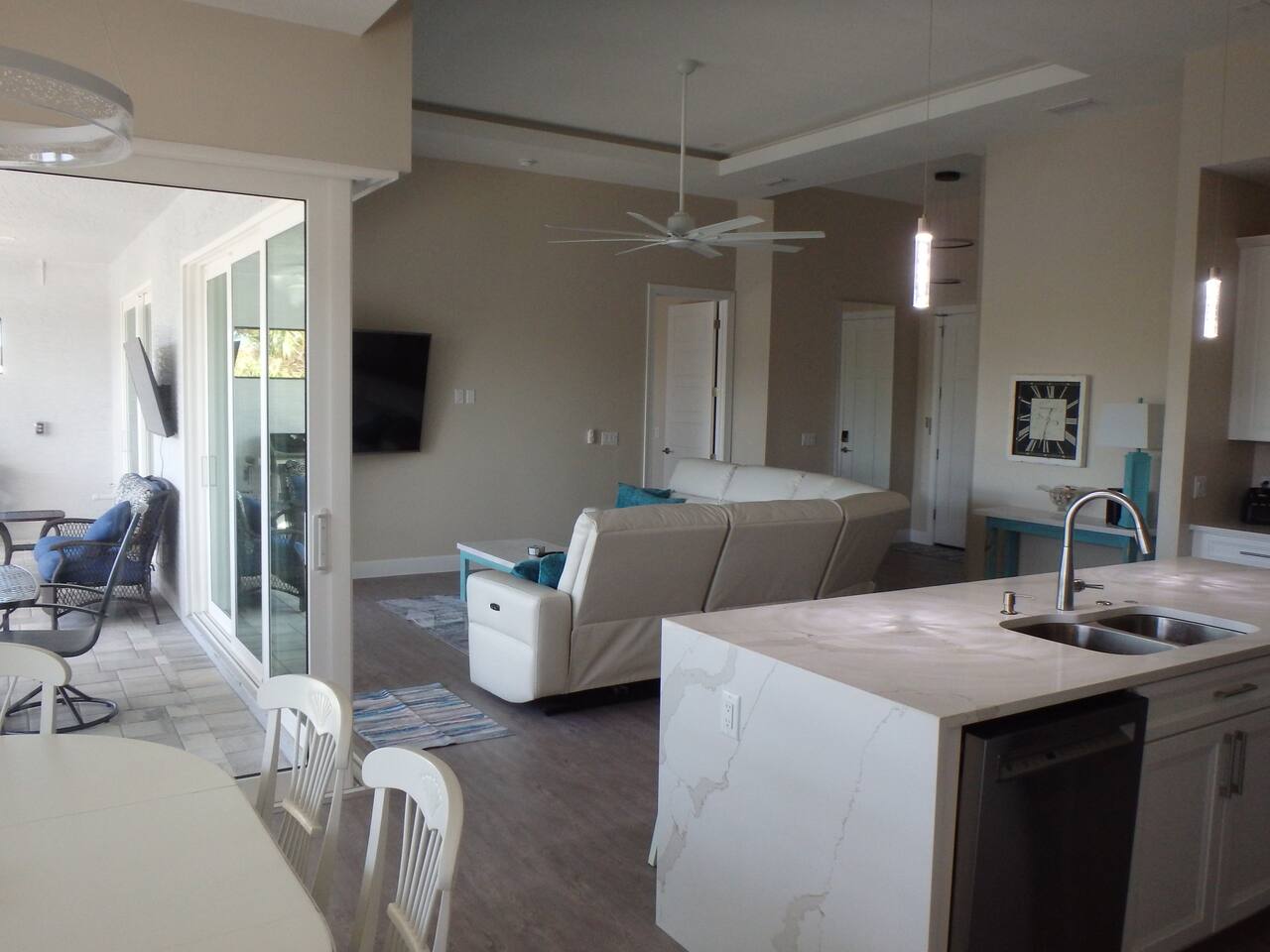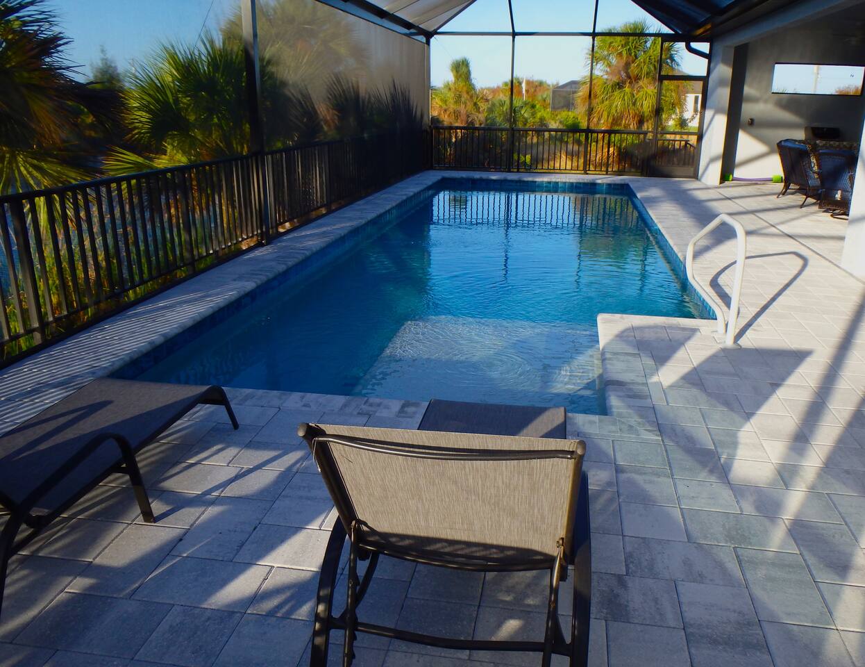 🏡 Welcome to Southern Exposure Retreat — a newly built, canal-front home designed for both family vacations and extended snowbird stays. Nestled in the quiet South Gulf Cove community, this peaceful 3-bedroom, 2-bath getaway blends modern comfort with Florida coastal living. Relax in the heated private pool, enjoy meals on the screened lanai, rinse off in the outdoor shower, or tie up your kayaks or paddleboards and explore the canals that lead toward the Gulf. Inside, the open-concept layout, family-friendly features, and fully equipped kitchen make this home ideal for relaxing, entertaining, or working remotely. Whether you're planning a week-long escape or a multi-month retreat, Southern Exposure Retreat offers space, privacy, and all the conveniences of home. 🛏 Bedrooms & Sleeping Spaces Primary Suite • King bed • Ensuite bathroom • Direct lanai access • Smart TV, large closet, room-darkening shades Bedroom 2 • Queen bed • Closet and nightstands • Room-darkening window treatments Bedroom 3 – Bunk Room • Twin-over-full bunk + additional twin bed • Ideal for kids or multi-family groups • Board games, extra linens, and storage 🛁 Bathrooms Primary Bath • Walk-in shower • Double vanity with ample storage Guest/Pool Bath • Shower • Convenient access from common areas Outdoor Shower • Perfect after pool time or paddling the canals 🍳 Kitchen & Dining • Full-size fridge, oven, stove, dishwasher • Blender, coffee maker, toaster, and BBQ tools • Cooking basics & spices included • Dining table for 6 + bar seating • Ideal for family meals and long-term cooking 💦 Outdoor Living • Heated private pool • Screened lanai with 2 outdoor dining tables • Comfy cushioned seating + loveseat • Two movable sun loungers • Gas grill for outdoor cooking • Peaceful canal views + stunning sunsets • Outdoor shower 🌊 Waterfront Access • Tie-up area for kayaks, paddleboards & small craft • Quiet canal perfect for morning paddles and sunset views • Quick access to South Gulf Cove’s canal system + Gulf routes 📍 Location Highlights • 15–20 min to Boca Grande, Englewood Beach, Manasota Key • 10 min to Rotonda golf courses • 5–15 min to boat ramps, Cape Haze Marina, and fishing charters • Surrounded by parks, trails, and wildlife • Quiet, safe neighborhood ideal for families and long walks 🧹 House Rules • No pets • No parties or events without approval • No smoking or vaping inside (OK outside) • Primary renter must be 30+ • Quiet hours: 10 PM – 7 AM