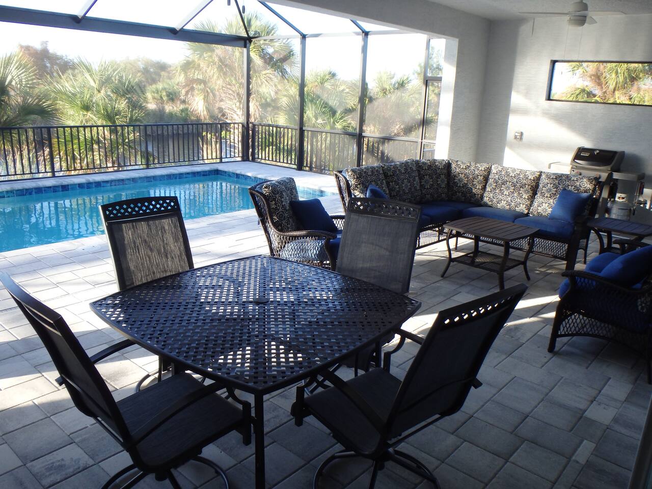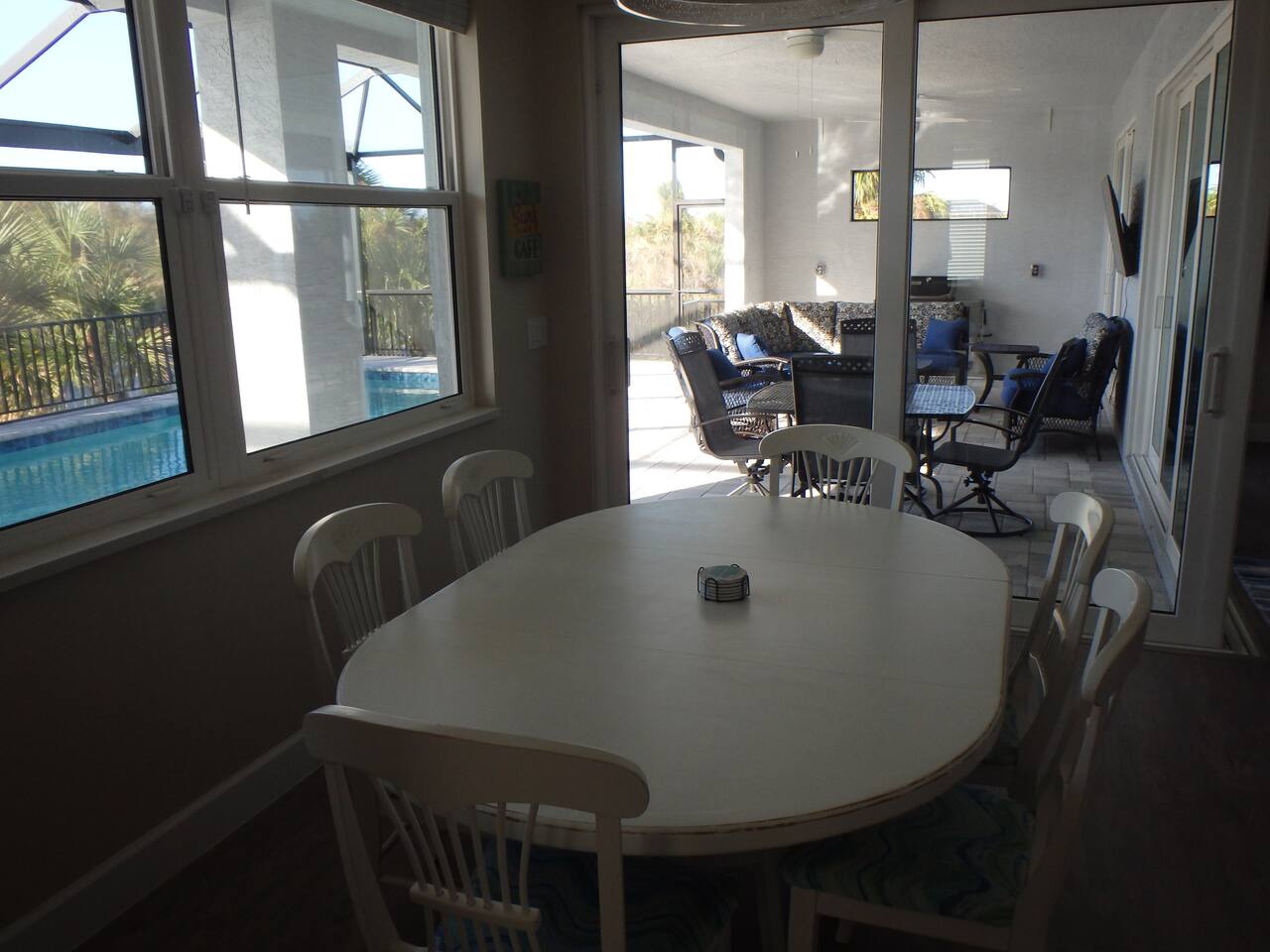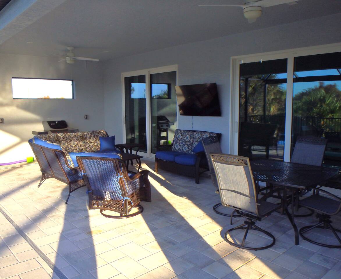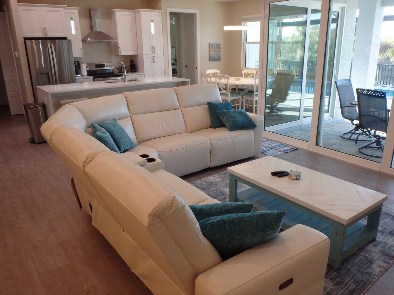 🏡 Welcome to Southern Exposure Retreat — a newly built, canal-front home designed for both family vacations and extended snowbird stays. Nestled in the quiet South Gulf Cove community, this peaceful 3-bedroom, 2-bath getaway blends modern comfort with Florida coastal living. Relax in the heated private pool, enjoy meals on the screened lanai, rinse off in the outdoor shower, or tie up your kayaks or paddleboards and explore the canals that lead toward the Gulf. Inside, the open-concept layout, family-friendly features, and fully equipped kitchen make this home ideal for relaxing, entertaining, or working remotely. Whether you're planning a week-long escape or a multi-month retreat, Southern Exposure Retreat offers space, privacy, and all the conveniences of home. 🛏 Bedrooms & Sleeping Spaces Primary Suite • King bed • Ensuite bathroom • Direct lanai access • Smart TV, large closet, room-darkening shades Bedroom 2 • Queen bed • Closet and nightstands • Room-darkening window treatments Bedroom 3 – Bunk Room • Twin-over-full bunk + additional twin bed • Ideal for kids or multi-family groups • Board games, extra linens, and storage 🛁 Bathrooms Primary Bath • Walk-in shower • Double vanity with ample storage Guest/Pool Bath • Shower • Convenient access from common areas Outdoor Shower • Perfect after pool time or paddling the canals 🍳 Kitchen & Dining • Full-size fridge, oven, stove, dishwasher • Blender, coffee maker, toaster, and BBQ tools • Cooking basics & spices included • Dining table for 6 + bar seating • Ideal for family meals and long-term cooking 💦 Outdoor Living • Heated private pool • Screened lanai with 2 outdoor dining tables • Comfy cushioned seating + loveseat • Two movable sun loungers • Gas grill for outdoor cooking • Peaceful canal views + stunning sunsets • Outdoor shower 🌊 Waterfront Access • Tie-up area for kayaks, paddleboards & small craft • Quiet canal perfect for morning paddles and sunset views • Quick access to South Gulf Cove’s canal system + Gulf routes 📍 Location Highlights • 15–20 min to Boca Grande, Englewood Beach, Manasota Key • 10 min to Rotonda golf courses • 5–15 min to boat ramps, Cape Haze Marina, and fishing charters • Surrounded by parks, trails, and wildlife • Quiet, safe neighborhood ideal for families and long walks 🧹 House Rules • No pets • No parties or events without approval • No smoking or vaping inside (OK outside) • Primary renter must be 30+ • Quiet hours: 10 PM – 7 AM