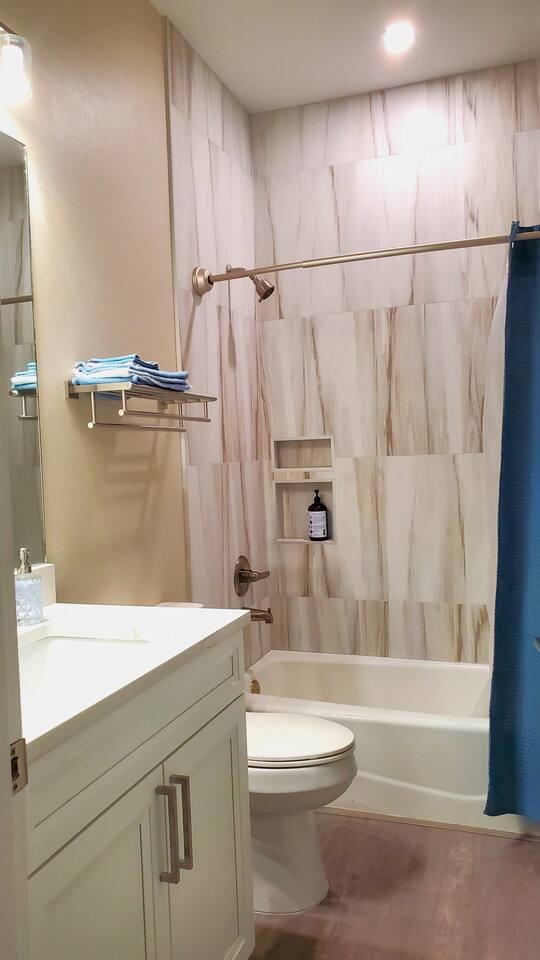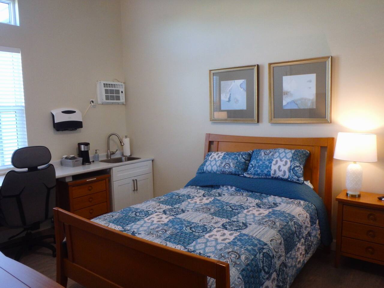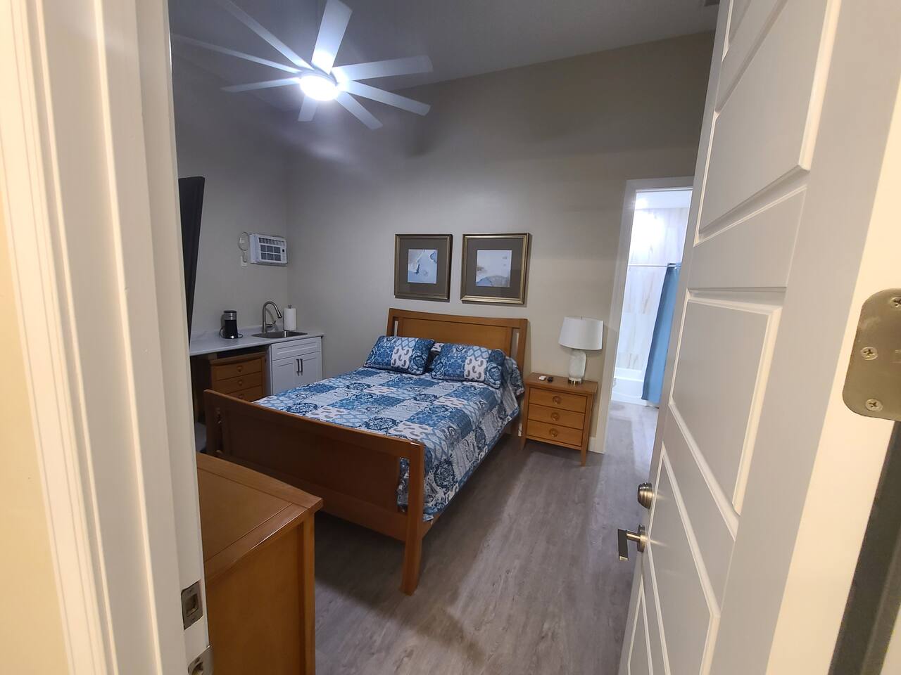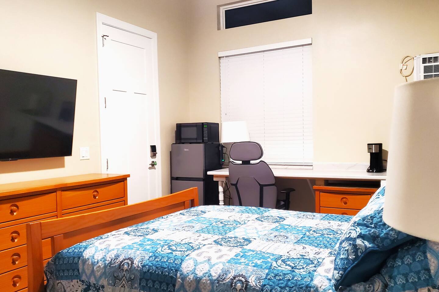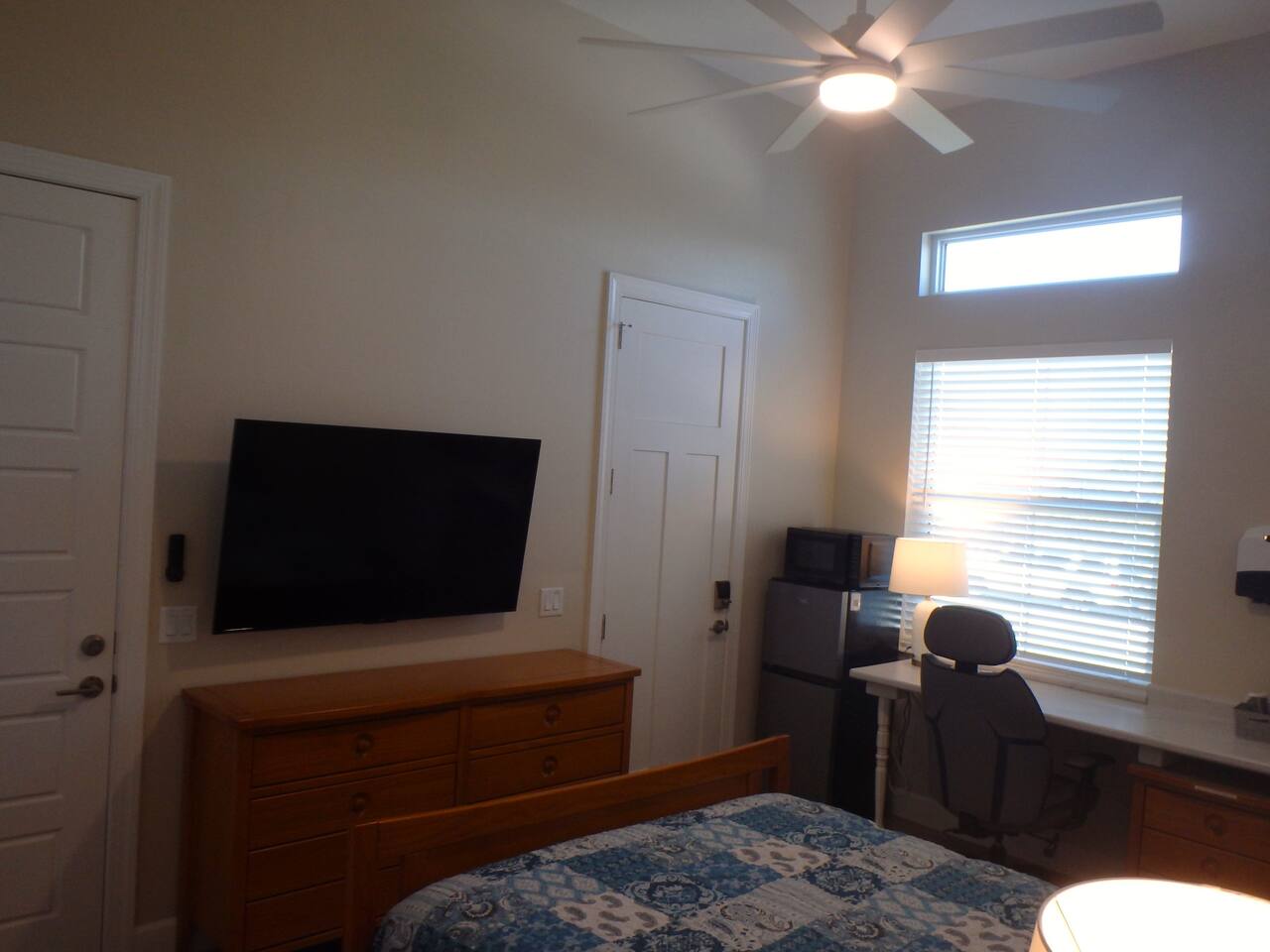Enjoy access to a large heated pool as you take a break and unwind at this peaceful oasis. Stay comfortably in this charming one-bedroom, one-bath suite featuring a relaxing bathtub. The suite offers a private entrance, separate heating and air conditioning, and a kitchenette with a small fridge/freezer, sink, microwave, and coffee maker. Includes a 55” smart TV, WiFi, and desk/work area. Attached to the main house yet very private, with all the essentials for a cozy, convenient stay.